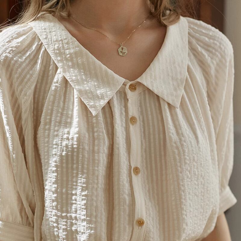 大人っぽさと可愛らしさが程よく詰まったパフスリーブストライプブラウス。 オフィスコーデからデートまで幅広く活躍します。 柔らかなエクリュカラーと縦のストライプ柄が、フェミニンでオシャレな雰囲気をプラスしてくれます。 《カラー》 エクリュ 《サイズ》 S:胸囲112cm 着丈55cm 袖丈34cm M:胸囲115cm 着丈56cm 袖丈35cm L:胸囲118cm 着丈57cm 袖丈36cm XL:胸囲121cm 着丈58cm 袖丈37cm ※採寸方法により1~3cmの誤差がある場合がございます。 《素材》 綿50%/ポリエステル50% ◇人気のおすすめアイテムをもっと見る https://shop.harmonique.net/categories/5911182 ◇商品を購入する前にこちらの【ご購入前に必ずお読みください】をご確認の上お買い求めください。 https://shop.harmonique.net/blog/2024/06/25/010751 《注意事項》 *harmoniqueではお客様からのご注文を受け、お客様の商品を製作・取り寄せしております。 *基本的にお取り寄せ商品となるため、発送までに《1~3週間前後》お時間をいただいております。 *ご覧いただいているPCやスマートフォンの画面により実物と多少色合いが異なる場合がございます。 *イメージ違いやサイズ違い等、その他お客様都合によりますキャンセル・返品交換はご遠慮ください。 トップページはこちら https://shop.harmonique.net/