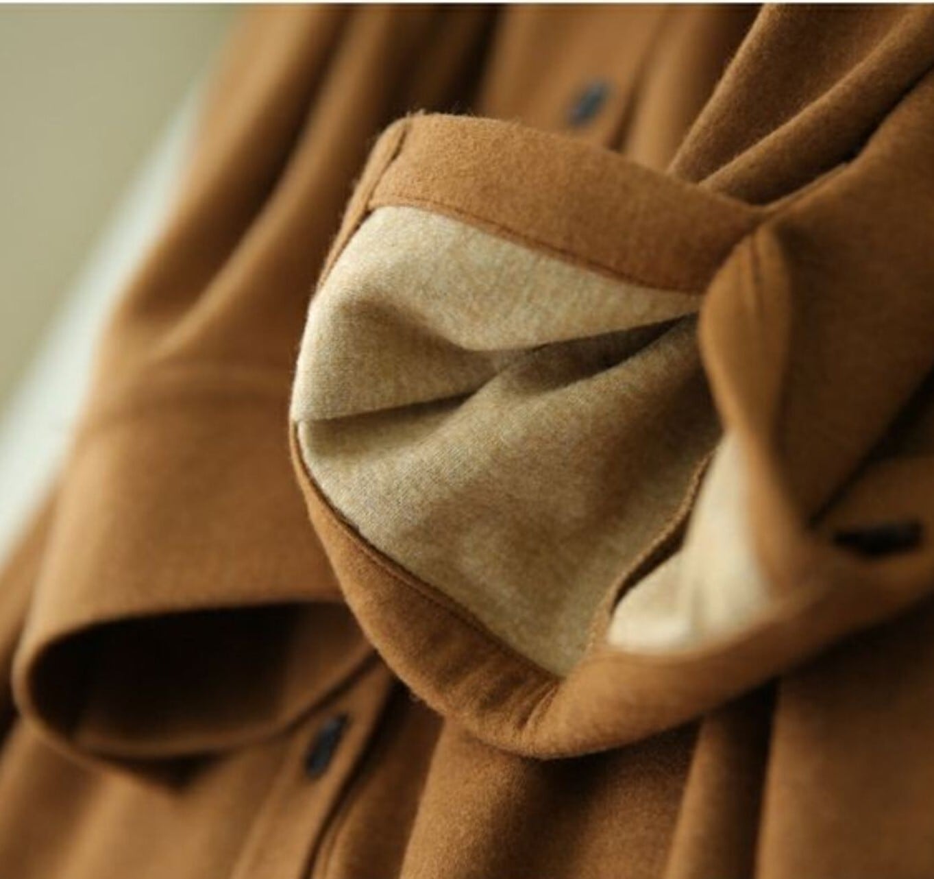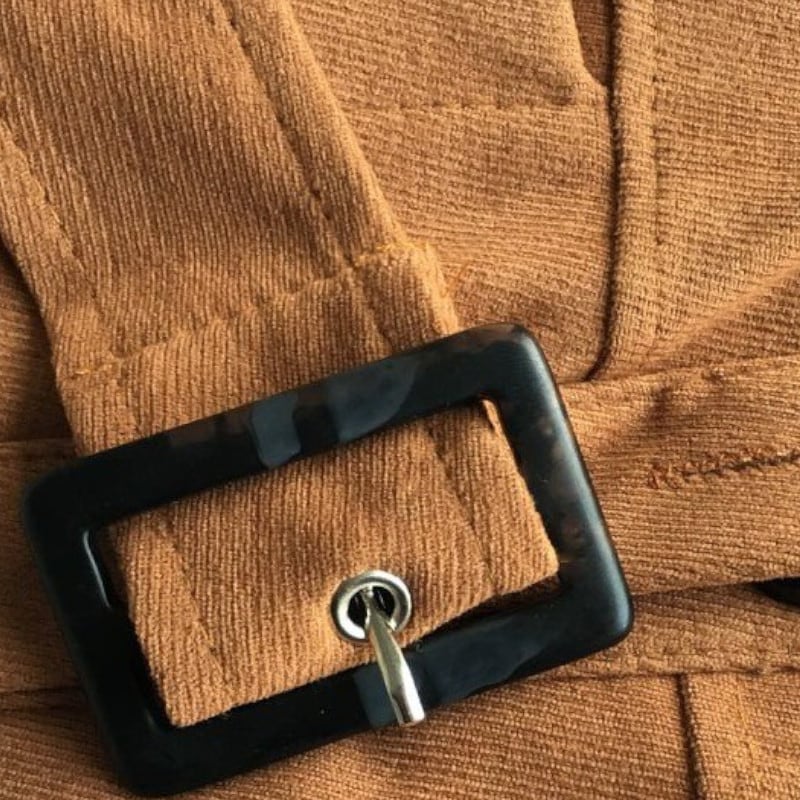 キャメルの上品な色合いが魅力的なミドル丈ワンピース。