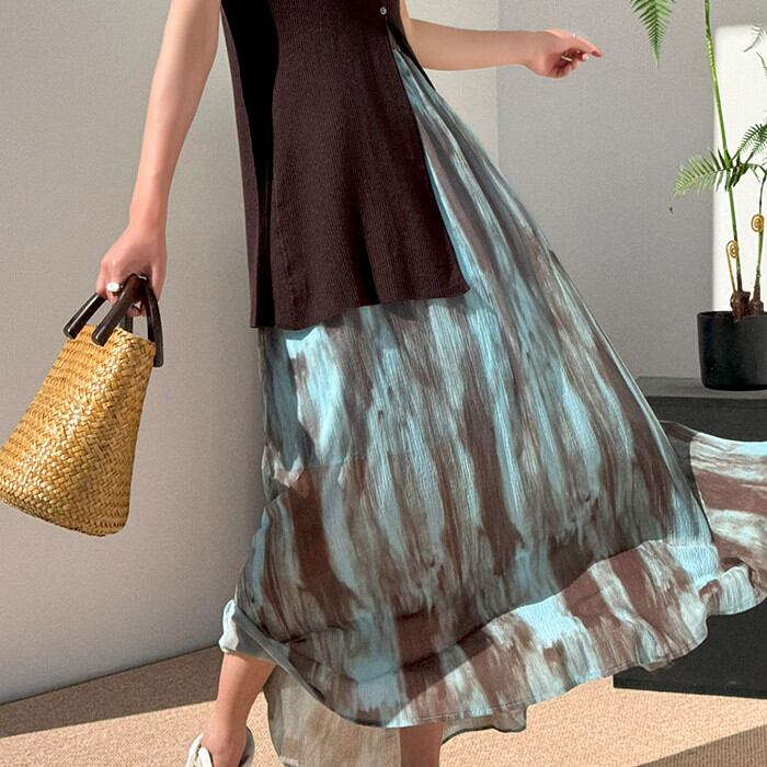 ヴィンテージ感満載のタイダイ柄が目を引くロングスカート。