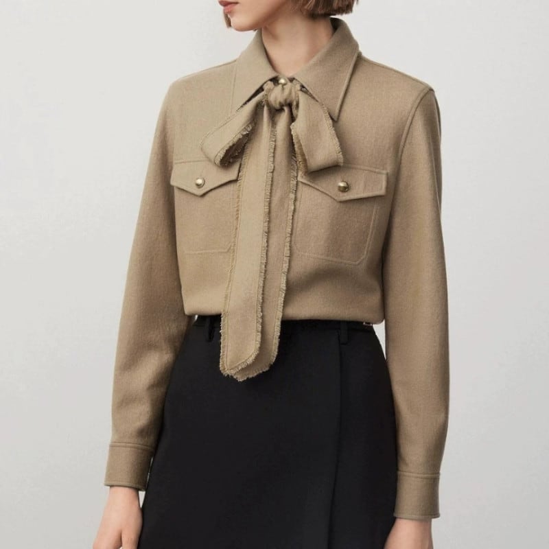 華やかな雰囲気漂う、ボウタイシャツトップ。 秋らしいカーキ色がコーディネートに上品さをプラスします。 ボウタイのリボンがアクセントになり、フェミニンな印象を演出。 《カラー》 カーキ 《サイズ》 S:肩幅41cm 胸囲97cm 着丈61.8cm 袖丈56.7cm 袖口21cm ウエスト95cm M:肩幅42cm 胸囲101cm 着丈63cm 袖丈57.5cm 袖口22cm ウエスト99cm L:肩幅43cm 胸囲105cm 着丈64.2cm 袖丈58.3cm 袖口23cm ウエスト103cm XL:肩幅44.2cm 胸囲110cm 着丈65.4cm 袖丈59.1cm 袖口24cm ウエスト108cm 2XL:肩幅45.4cm 胸囲115cm 着丈66.1cm 袖丈59.4cm 袖口25cm ウエスト113cm ※採寸方法により1~3cmの誤差がある場合がございます。 《素材》 羊毛 ◇人気のおすすめアイテムをもっと見る https://shop.harmonique.net/categories/5911182 ◇商品を購入する前にこちらの【ご購入前に必ずお読みください】をご確認の上お買い求めください。 https://shop.harmonique.net/blog/2024/06/25/010751 《注意事項》 *harmoniqueではお客様からのご注文を受け、お客様の商品を製作・取り寄せしております。 *基本的にお取り寄せ商品となるため、発送までに《1~3週間前後》お時間をいただいております。 *ご覧いただいているPCやスマートフォンの画面により実物と多少色合いが異なる場合がございます。 *イメージ違いやサイズ違い等、その他お客様都合によりますキャンセル・返品交換はご遠慮ください。 トップページはこちら https://shop.harmonique.net/