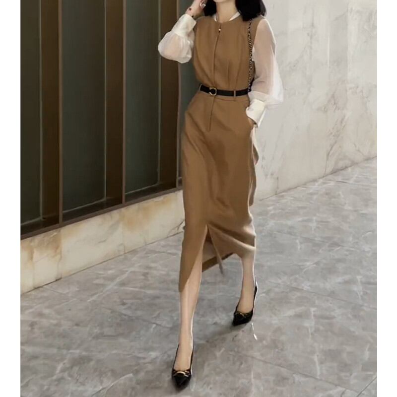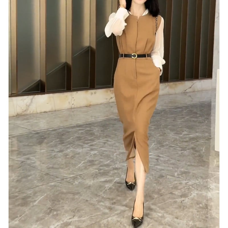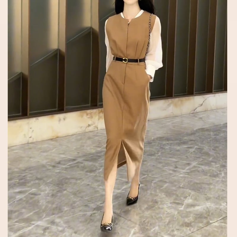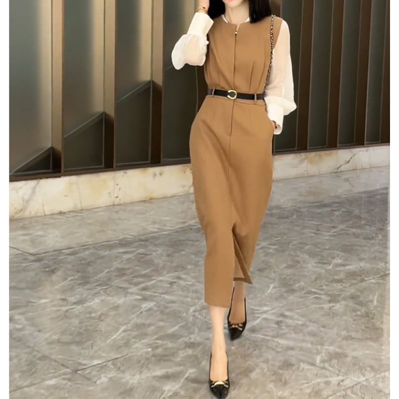 女性らしさと大人のエレガンスを演出するシアーシャツ&ミモレ丈ベストワンピースのセットアップ。 シアー素材の透け感が上品な印象を与え、セットアップで着る事で一気におしゃれ度がアップします。 ミモレ丈のワンピースは、膝上から下半身を程よくカバーし、女性らしいシルエットを演出します。 洗練されたコーディネートが一枚で完成するので、忙しい朝でもラクにおしゃれを楽しむことが可能。 《カラー》 ブラック/ブラウン 《サイズ》 シャツ S:肩幅36cm 胸囲93cm 袖丈56.5cm 袖口21cm 着丈59cm M:肩幅37cm 胸囲97cm 袖丈57cm 袖口22cm 着丈60cm L:肩幅38cm 胸囲101cm 袖丈57.5cm 袖口23cm 着丈61cm XL:肩幅39cm 胸囲105cm 袖丈58cm 袖口24cm 着丈62cm ワンピース S:肩幅33cm ウエスト69cm 総丈114cm M:肩幅34cm ウエスト73cm 総丈115cm L:肩幅35cm ウエスト77cm 総丈116cm XL:肩幅36cm ウエスト81cm 総丈117cm ※採寸方法により1~3cmの誤差がある場合がございます。 《素材》 ポリエステル/スパンデックス ◇サイズで迷ったらこちらをチェック https://harmonique.my.canva.site/dagieuhhs-e ◇商品を購入する前にこちらの【ご購入前に必ずお読みください】をご確認の上お買い求めください。 https://shop.harmonique.net/blog/2024/06/25/010751 《注意事項》 *harmoniqueではお客様からのご注文を受け、お客様の商品を製作・取り寄せしております。 *基本的にお取り寄せ商品となるため、発送までに《1~3週間前後》お時間をいただいております。 *ご覧いただいているPCやスマートフォンの画面により実物と多少色合いが異なる場合がございます。 *イメージ違いやサイズ違い等、その他お客様都合によりますキャンセル・返品交換はご遠慮ください。 トップページはこちら https://shop.harmonique.net/