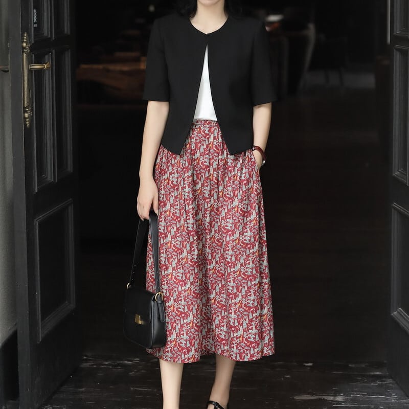 トレンドのAラインシルエットが魅力のスカート。 美しいレッドのプリント柄が、華やかさを演出してくれます。 あなたの日常を彩り豊かにしてくれる一枚です。 ミディ丈とロング丈の2種類展開。 ぜひ、お気に入りのトップスと合わせて、お洒落なコーディネートを楽しんでくださいね。 《サイズ》 S: ウエスト68cm 総丈78cm(ロング丈84cm) M: ウエスト72cm 総丈79cm(ロング丈85cm) L: ウエスト76cm 総丈80cm(ロング丈86cm) XL:ウエスト80cm 総丈81cm(ロング丈87cm) ※採寸方法により1~3cmの誤差がある場合がございます ※モデル 身長163cm 体重55kg Mサイズ着用 《素材》 綿 ◇サイズで迷ったらこちらをチェック https://harmonique.my.canva.site/dagieuhhs-e ◇商品を購入する前にこちらの【ご購入前に必ずお読みください】をご確認の上お買い求めください。 https://shop.harmonique.net/blog/2024/06/25/010751 《注意事項》 *harmoniqueではお客様からのご注文を受け、お客様の商品を製作・取り寄せしております。 *基本的にお取り寄せ商品となるため、発送までに《1~3週間前後》お時間をいただいております。 *ご覧いただいているPCやスマートフォンの画面により実物と多少色合いが異なる場合がございます。 *イメージ違いやサイズ違い等、その他お客様都合によりますキャンセル・返品交換はご遠慮ください。 トップページはこちら https://shop.harmonique.net/
