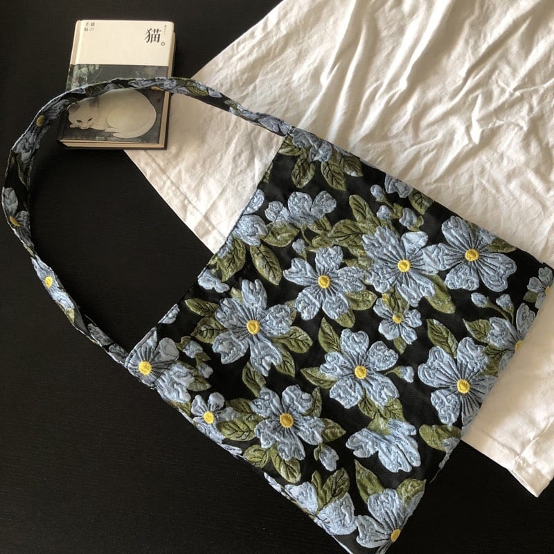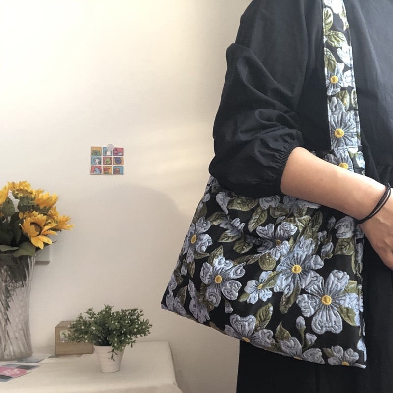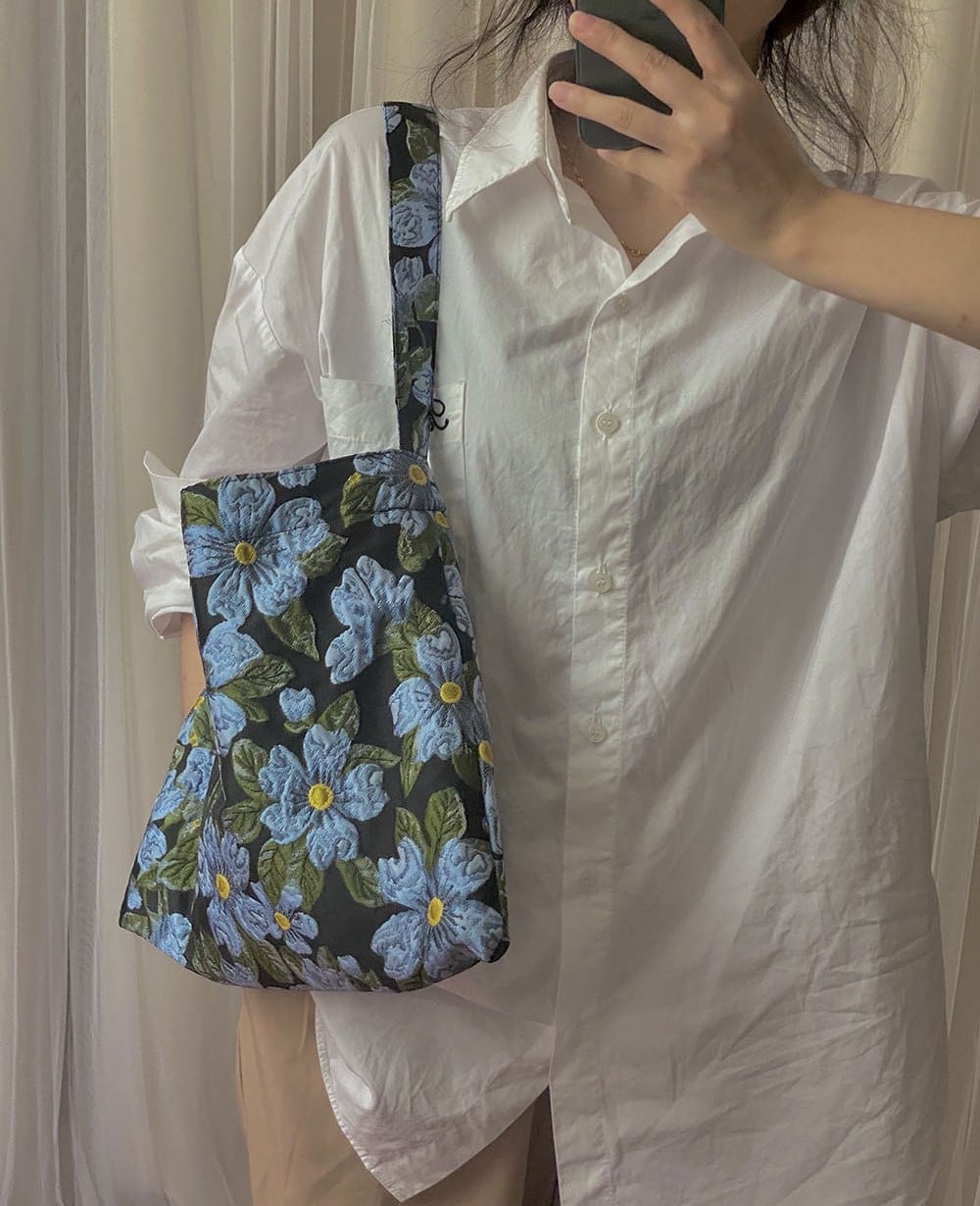 ブラックのベースに施された色鮮やかな花柄が、コーディネートにアクセントを加えてくれます。