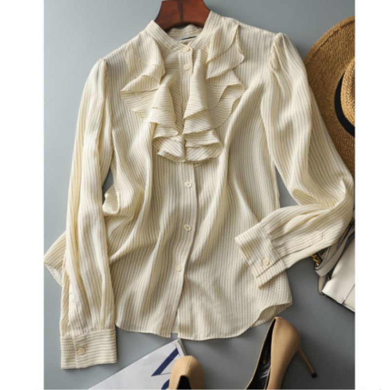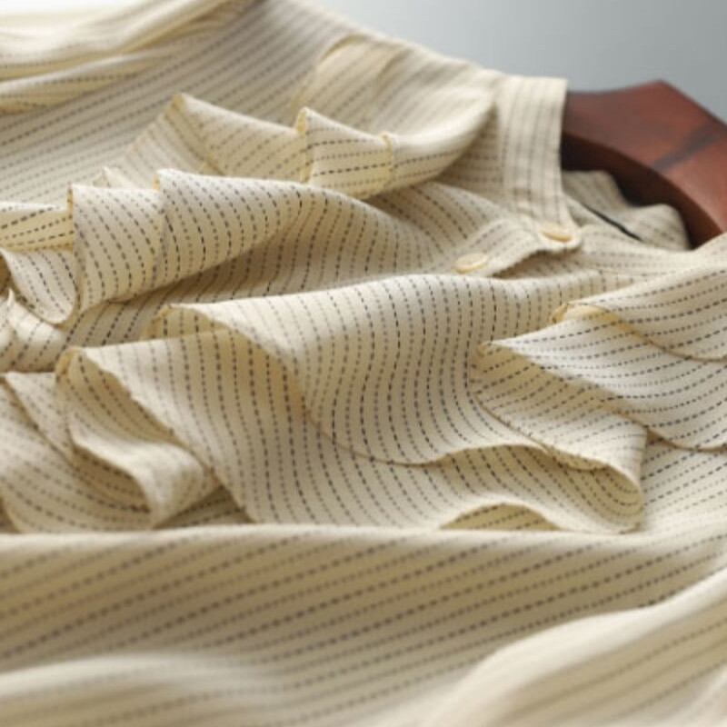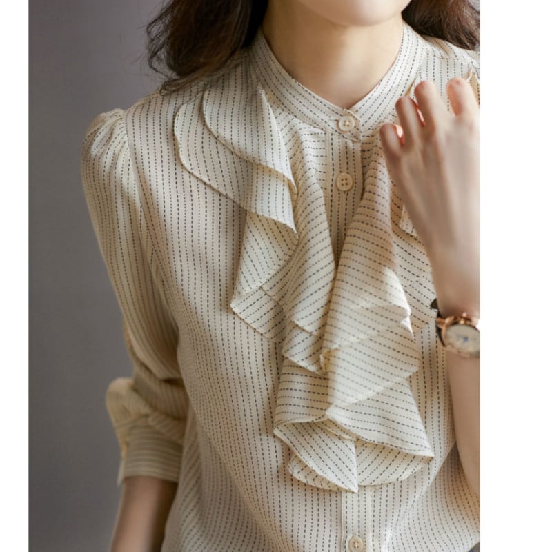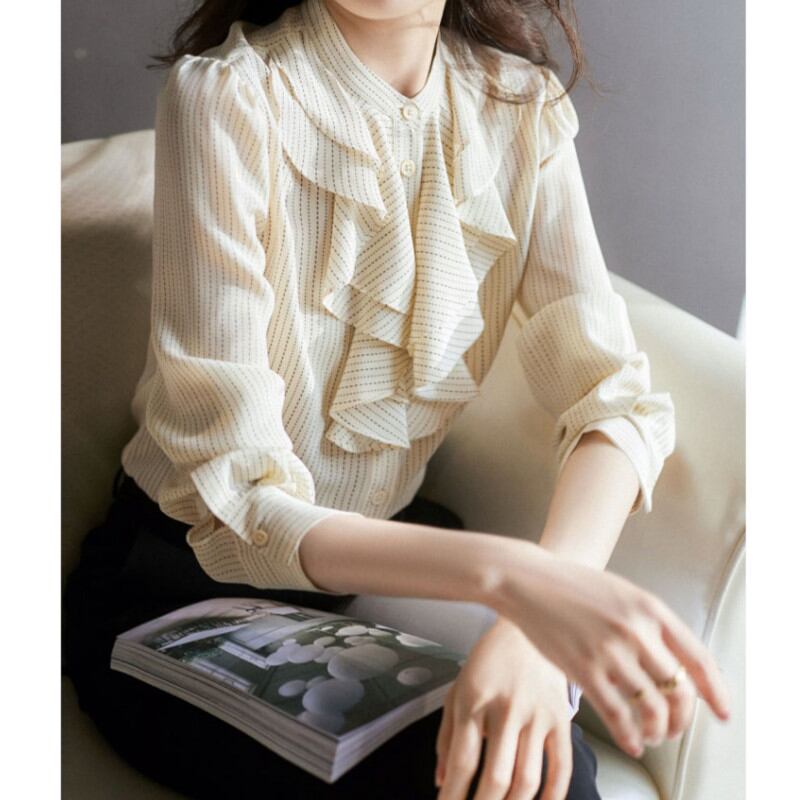 デイリーに活躍するストライプフリルブラウス。 清楚な印象を演出するオフホワイトのストライプ柄に、女性らしいフリルデザインがポイントです。 仕事やデート、ちょっとしたお出かけにもピッタリなアイテム。 《カラー》 オフホワイト 《サイズ》 S:肩幅36.2cm 胸囲98cm 着丈66.5cm 袖丈63cm 裾幅101.5cm M:肩幅37.2cm 胸囲102cm 着丈67.5cm 袖丈64cm 裾幅105.5cmm L:肩幅38.2cm 胸囲106cm 着丈68.5cm 袖丈65cm 裾幅109.5cm XL:肩幅39.2cm 胸囲110cm 着丈69.5cm 袖丈66cm 裾幅113.5cm ※採寸方法により1~3cmの誤差がある場合がございます。 ◇人気のおすすめアイテムをもっと見る https://shop.harmonique.net/categories/5911182 ◇商品を購入する前にこちらの【ご購入前に必ずお読みください】をご確認の上お買い求めください。 https://shop.harmonique.net/blog/2024/06/25/010751 《注意事項》 *harmoniqueではお客様からのご注文を受け、お客様の商品を製作・取り寄せしております。 *基本的にお取り寄せ商品となるため、発送までに《1~3週間前後》お時間をいただいております。 *ご覧いただいているPCやスマートフォンの画面により実物と多少色合いが異なる場合がございます。 *イメージ違いやサイズ違い等、その他お客様都合によりますキャンセル・返品交換はご遠慮ください。 トップページはこちら https://shop.harmonique.net/