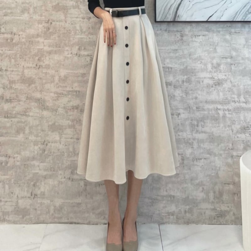 フロントボタンが上品なアクセントのAラインスカート。 軽やかで美しいシルエットが特徴で、スタイリッシュな着こなしを叶えます。 コーデが決まるベルト付きです(バックル形状は予告なく変更する場合がございます。) 《サイズ》 S: ウエスト64cm 総丈79cm M:ウエスト68cm 総丈80cm L: ウエスト72cm 総丈81cm XL:ウエスト76cm 総丈82cm ※採寸方法により1~3cmの誤差がある場合がございます ※モデル 身長163cm 体重45kg Sサイズ着用 《素材》 ポリエステル ◇サイズで迷ったらこちらをチェック https://harmonique.my.canva.site/dagieuhhs-e ◇商品を購入する前にこちらの【ご購入前に必ずお読みください】をご確認の上お買い求めください。 https://shop.harmonique.net/blog/2024/06/25/010751 《注意事項》 *harmoniqueではお客様からのご注文を受け、お客様の商品を製作・取り寄せしております。 *基本的にお取り寄せ商品となるため、発送までに《1~3週間前後》お時間をいただいております。 *ご覧いただいているPCやスマートフォンの画面により実物と多少色合いが異なる場合がございます。 *イメージ違いやサイズ違い等、その他お客様都合によりますキャンセル・返品交換はご遠慮ください。 トップページはこちら https://shop.harmonique.net/