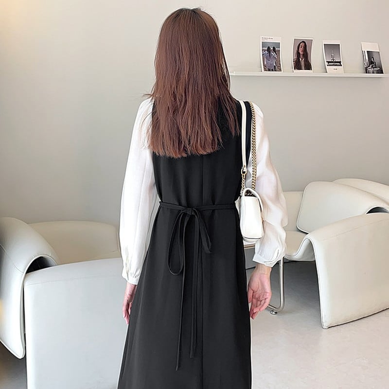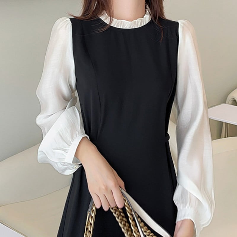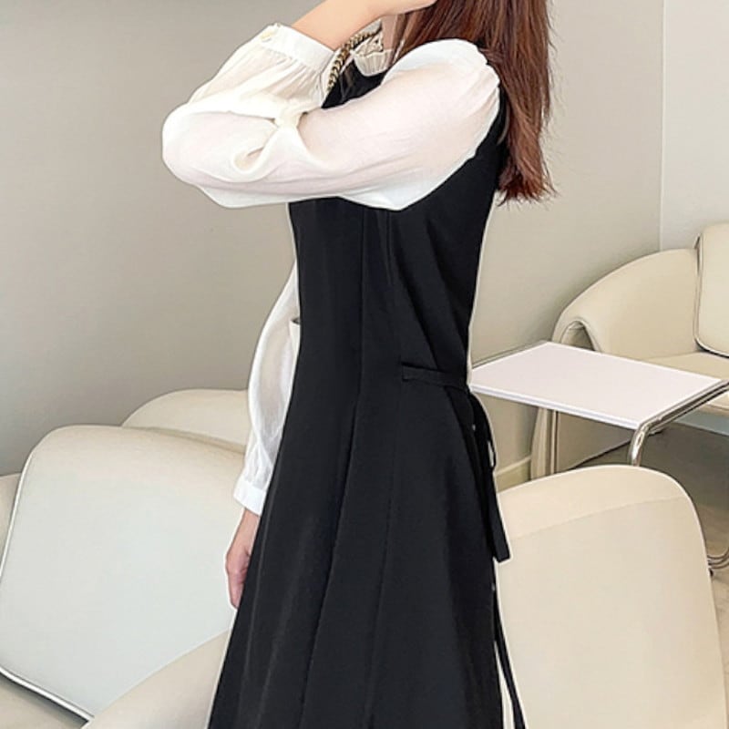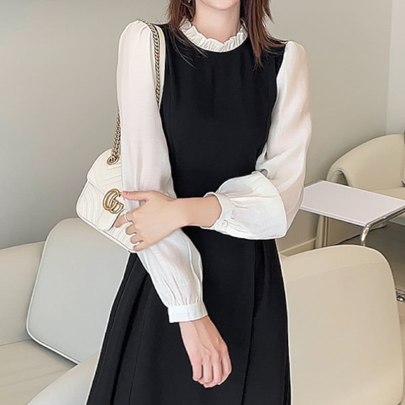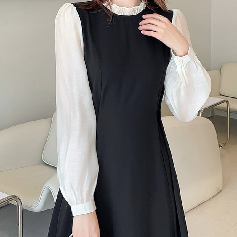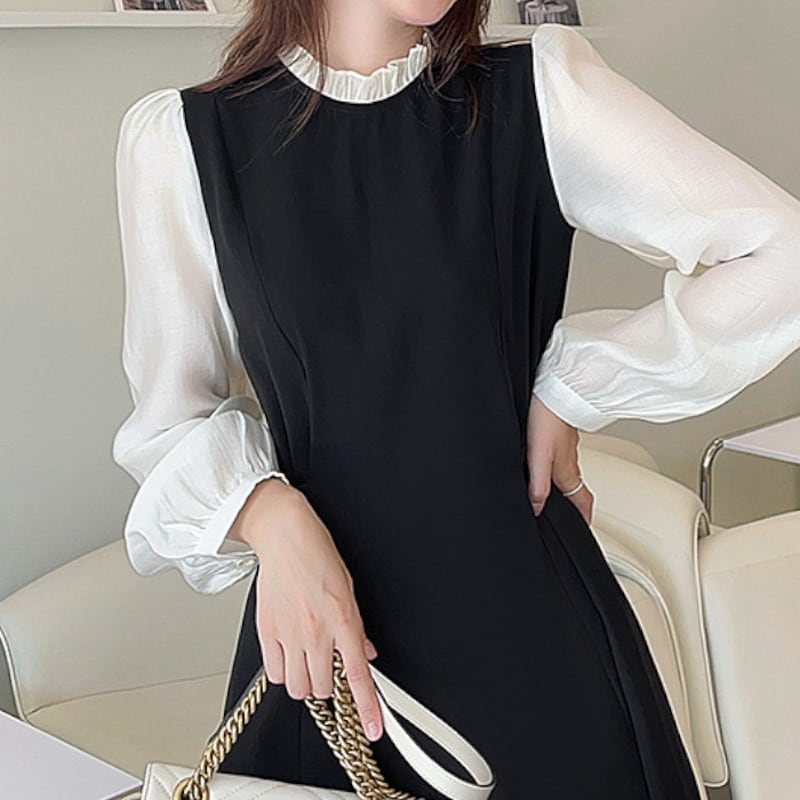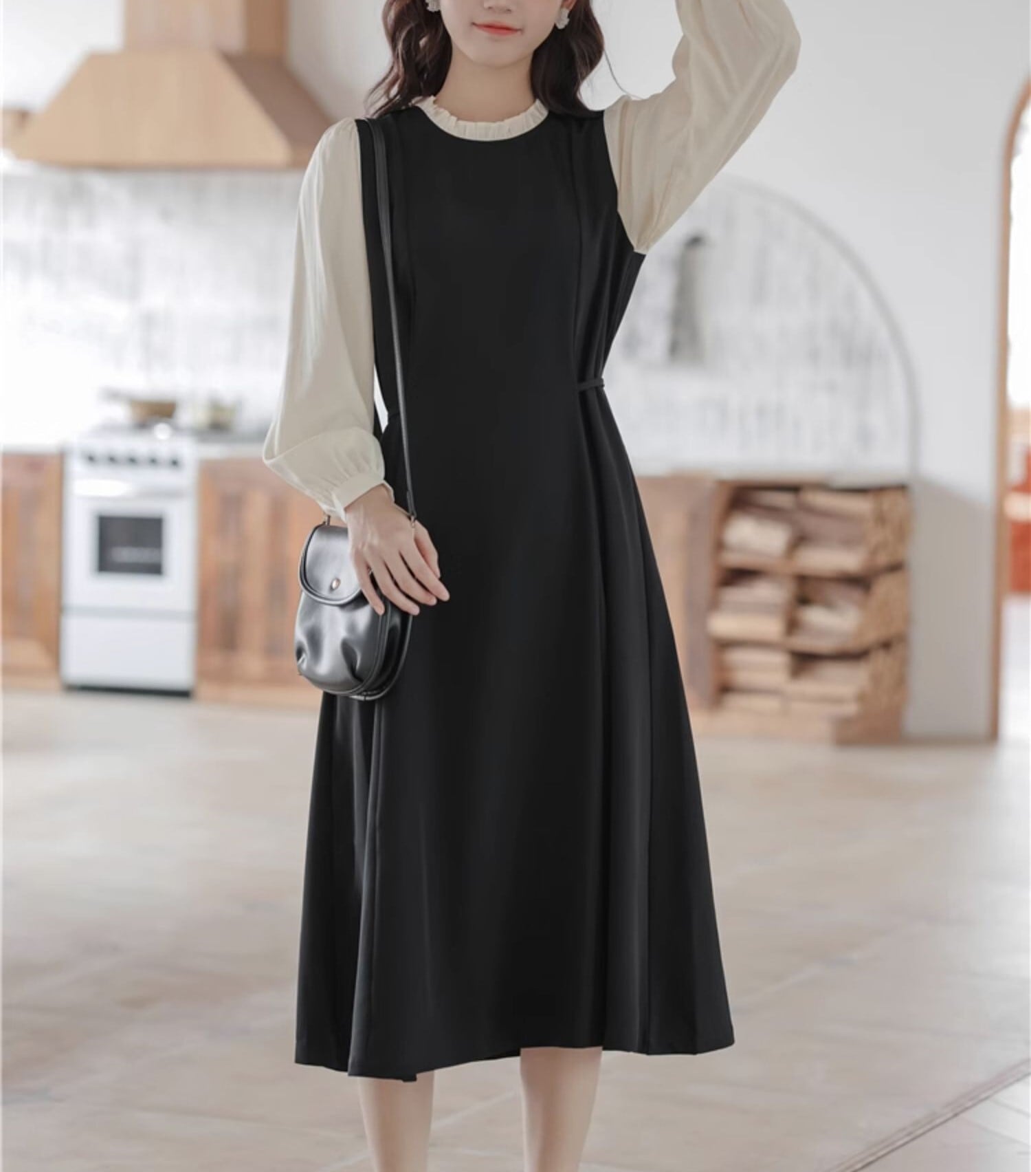 シンプルながらも洗練された印象を持つレイヤード風バイカラーワンピース。 白いブラウスの上にノースリーブワンピースを重ね着しているかのようなオシャレなデザイン。 フリルになった襟が大人可愛い雰囲気をプラスしてくれます。 お友達とのランチ、休日のお出かけなど、どんなシーンでも活躍する一枚です。 《カラー》 ブラック 《サイズ》 S:肩幅35cm 胸囲98cm 総丈112cm 袖丈61cm M:肩幅36cm 胸囲102cm 総丈113cm 袖丈62cm L:肩幅37cm 胸囲106cm 総丈114cm 袖丈63cm ※採寸方法により1~3cm程度の誤差がある場合がございます。 ※モデル 身長168cm 体重50kg Sサイズ着用 《素材》 ポリエステル ◇サイズで迷ったらこちらをチェック https://harmonique.my.canva.site/dagieuhhs-e ◇商品を購入する前にこちらの【ご購入前に必ずお読みください】をご確認の上お買い求めください。 https://shop.harmonique.net/blog/2024/06/25/010751 《注意事項》 *harmoniqueではお客様からのご注文を受け、お客様の商品を製作・取り寄せしております。 *基本的にお取り寄せ商品となるため、発送までに《1~3週間前後》お時間をいただいております。 *ご覧いただいているPCやスマートフォンの画面により実物と多少色合いが異なる場合がございます。 *イメージ違いやサイズ違い等、その他お客様都合によりますキャンセル・返品交換はご遠慮ください。 トップページはこちら https://shop.harmonique.net/