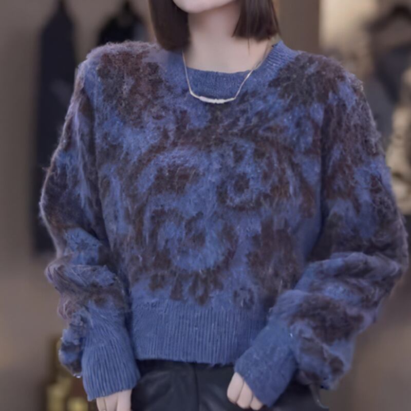 ラウンドネックでおしゃれを楽しめる、コントラストカラージャガードニット。