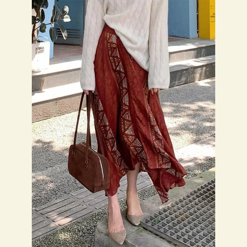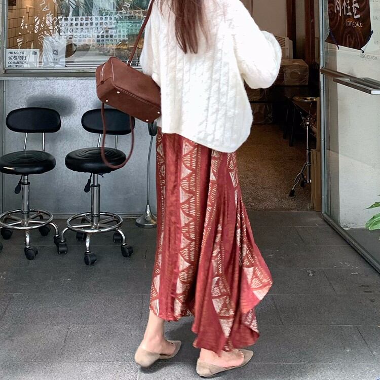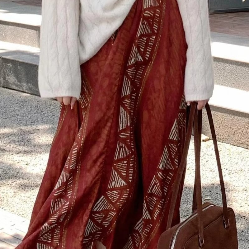 エスニックな魅力満載のミモレ丈スカート。 深いレッドカラーが秋冬のコーディネートを華やかに彩ります。 ユニークなプリントデザインが個性的で、どんなトップスとも相性抜群です。 《サイズ》 S: ウエスト64cm 総丈80cm M:ウエスト68cm 総丈81cm L: ウエスト72cm 総丈82cm XL:ウエスト76cm 総丈83cm ※採寸方法により1~3cmの誤差がある場合がございます ※モデル165cm50kg Sサイズ着用 《素材》 ポリエステル 他 ◇サイズで迷ったらこちらをチェック https://harmonique.my.canva.site/dagieuhhs-e ◇商品を購入する前にこちらの【ご購入前に必ずお読みください】をご確認の上お買い求めください。 https://shop.harmonique.net/blog/2024/06/25/010751 《注意事項》 *harmoniqueではお客様からのご注文を受け、お客様の商品を製作・取り寄せしております。 *基本的にお取り寄せ商品となるため、発送までに《1~3週間前後》お時間をいただいております。 *ご覧いただいているPCやスマートフォンの画面により実物と多少色合いが異なる場合がございます。 *イメージ違いやサイズ違い等、その他お客様都合によりますキャンセル・返品交換はご遠慮ください。 トップページはこちら https://shop.harmonique.net/