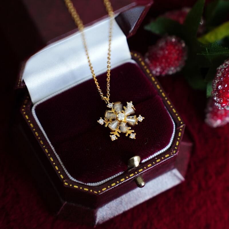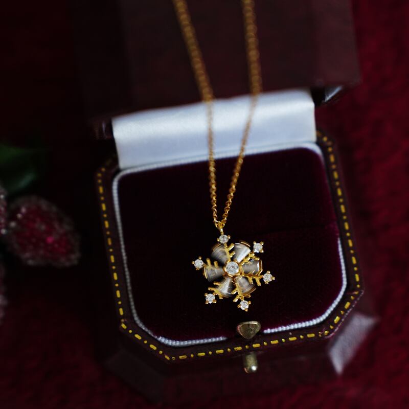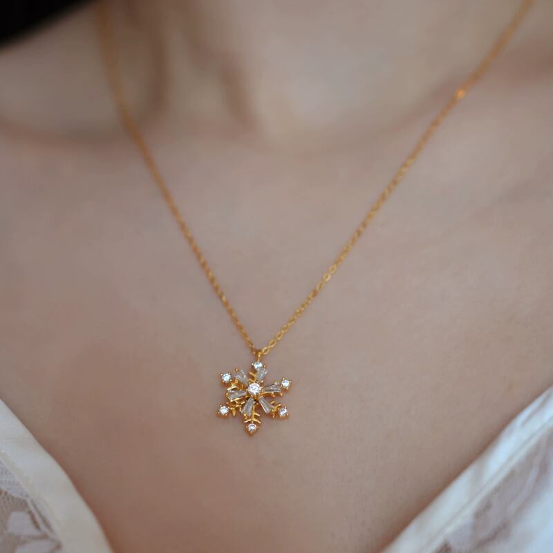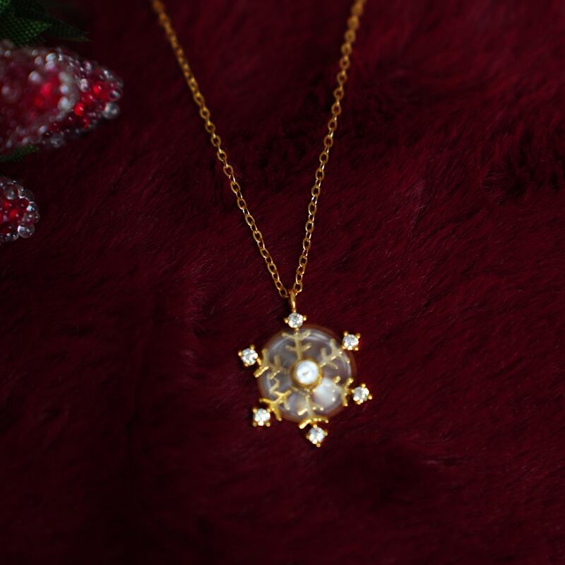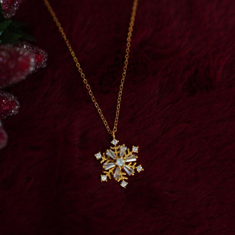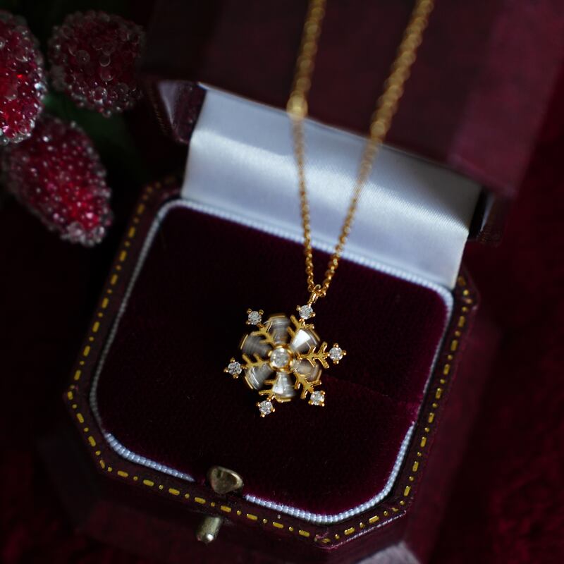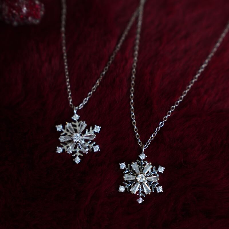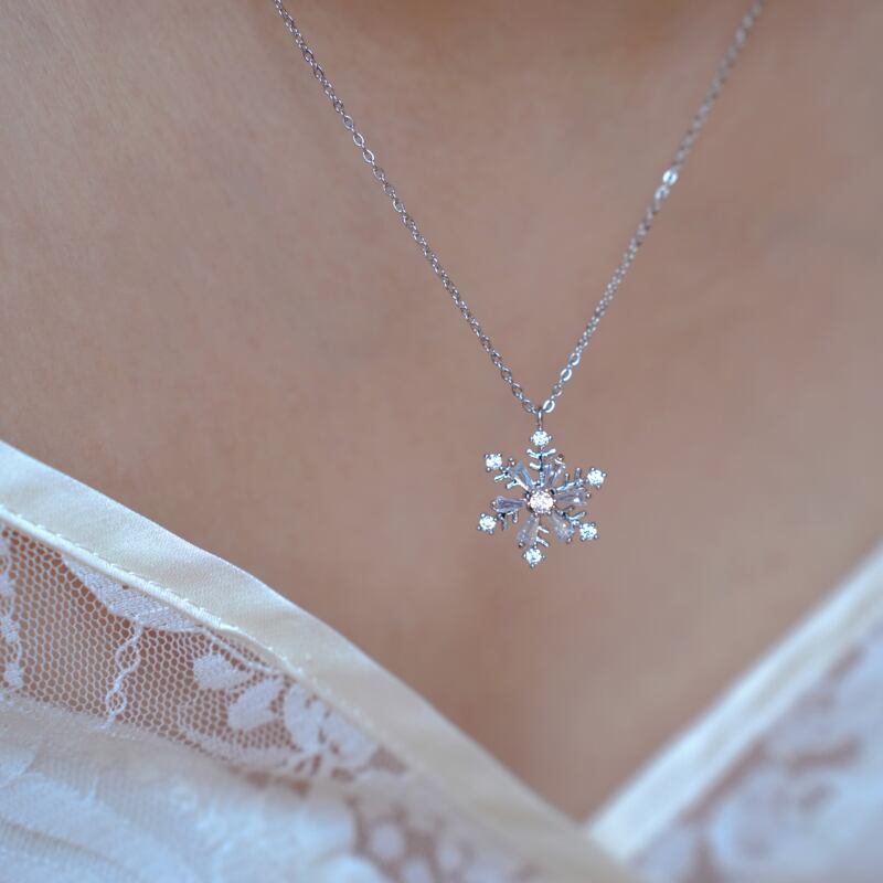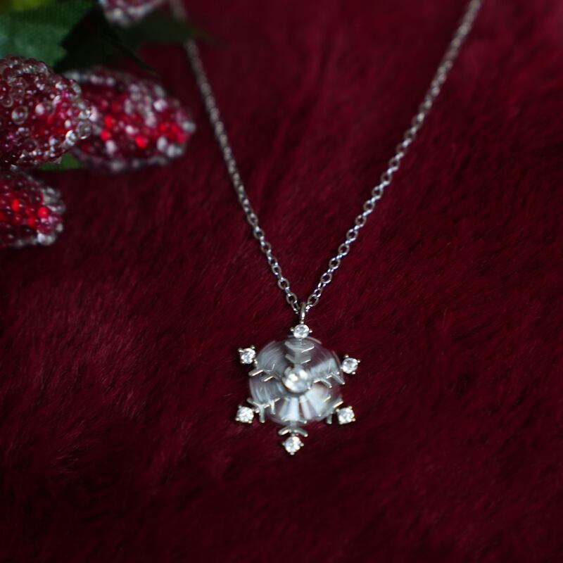 美しいスノーモチーフが施された、エレガントなチェーンネックレス。