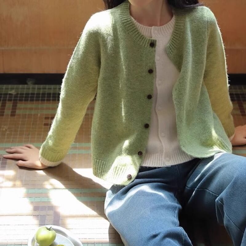 ホワイトのトップスにグリーンのカーディガンを重ね着したかのようなデザインが魅力のレイヤード風ニットカーディガン 。 美しいグリーンの色合いが、華やかさ演出し、ラウンドネックが顔周りを明るく彩ります。 幅広いコーディネートに対応するエレガントな一枚です。 《カラー》 グリーン 《サイズ》 S:肩幅37cm 胸囲96cm 着丈52cm 袖丈57cm M:肩幅38cm 胸囲100cm 着丈53cm 袖丈58cm L:肩幅39cm 胸囲104cm 着丈54cm 袖丈59cm XL:肩幅40cm 胸囲108cm 着丈55cm 袖丈60cm ※採寸方法により1~3cmの誤差がある場合がございます。 ◇人気のおすすめアイテムをもっと見る https://shop.harmonique.net/categories/5911182 ◇商品を購入する前にこちらの【ご購入前に必ずお読みください】をご確認の上お買い求めください。 https://shop.harmonique.net/blog/2024/06/25/010751 《注意事項》 *harmoniqueではお客様からのご注文を受け、お客様の商品を製作・取り寄せしております。 *基本的にお取り寄せ商品となるため、発送までに《1~3週間前後》お時間をいただいております。 *ご覧いただいているPCやスマートフォンの画面により実物と多少色合いが異なる場合がございます。 *イメージ違いやサイズ違い等、その他お客様都合によりますキャンセル・返品交換はご遠慮ください。 トップページはこちら https://shop.harmonique.net/