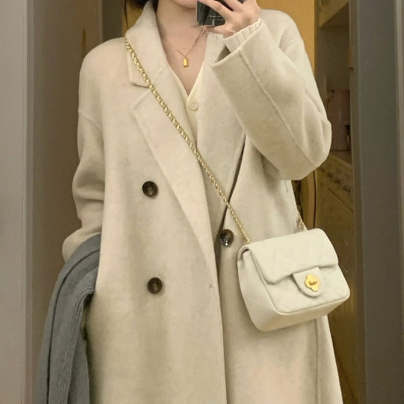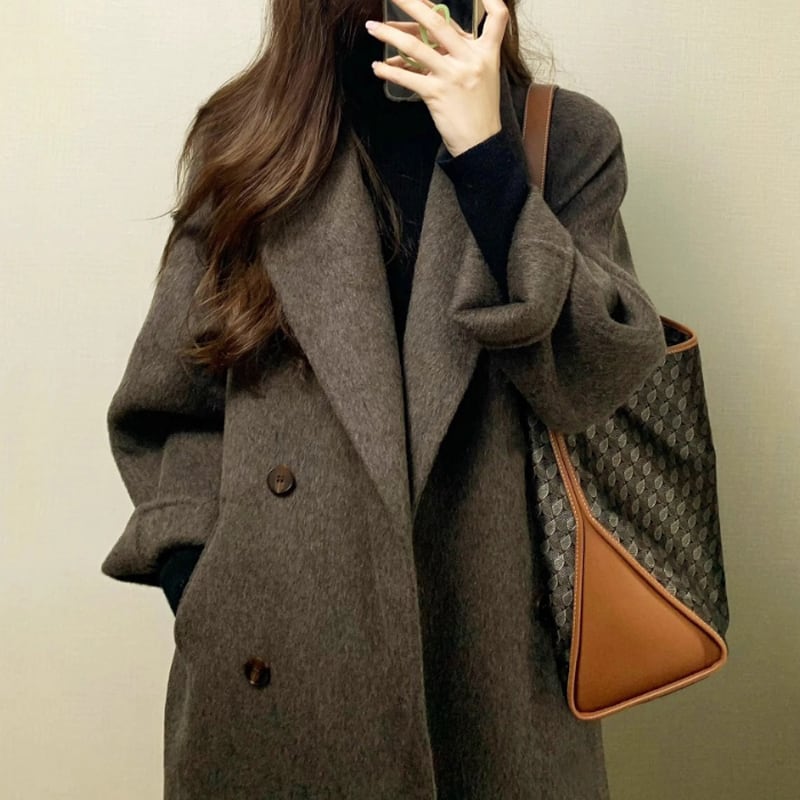 《無料サイズ交換対象》 エレガントなスタイルを求めるあなたにぴったりのダブルブレストミモレ丈コート。 クリーンなラインが特徴的で、シルエットが体を美しく引き立てます。 オーストラリア産の羊毛を使用した生地は毛玉ができにくく、毛羽立ちにくく、チクチク感もありません。 高い保温性を備え、冬の装いを暖かく彩ります。 美しいデザインに身を包んで、あなたの個性をより一層引き立ててみませんか? 《カラー》 ブラウン/アイボリー/グレー/ブラック/グレーブラック 《サイズ》 XS:胸囲112cm 着丈106cm 袖丈58cm S:胸囲116cm 着丈107cm 袖丈59cm M:胸囲120cm 着丈108cm 袖丈60cm L:胸囲124cm 着丈109cm 袖丈61cm XL:胸囲126cm 着丈110cm 袖丈62cm ※採寸方法により1~3cmの誤差がある場合がございます。 《素材》 ウール100% ◇人気のおすすめアイテムをもっと見る https://shop.harmonique.net/categories/5911182 ◇商品を購入する前にこちらの【ご購入前に必ずお読みください】をご確認の上お買い求めください。 https://shop.harmonique.net/blog/2024/06/25/010751 ◇《無料サイズ交換対象》について 詳しくはこちら https://shop.harmonique.net/blog/2025/09/20/180024 《注意事項》 *harmoniqueではお客様からのご注文を受け、お客様の商品を製作・取り寄せしております。 *基本的にお取り寄せ商品となるため、発送までに《1~3週間前後》お時間をいただいております。 *ご覧いただいているPCやスマートフォンの画面により実物と多少色合いが異なる場合がございます。 *イメージ違いやサイズ違い等、その他お客様都合によりますキャンセル・返品交換はご遠慮ください。 トップページはこちら https://shop.harmonique.net/
