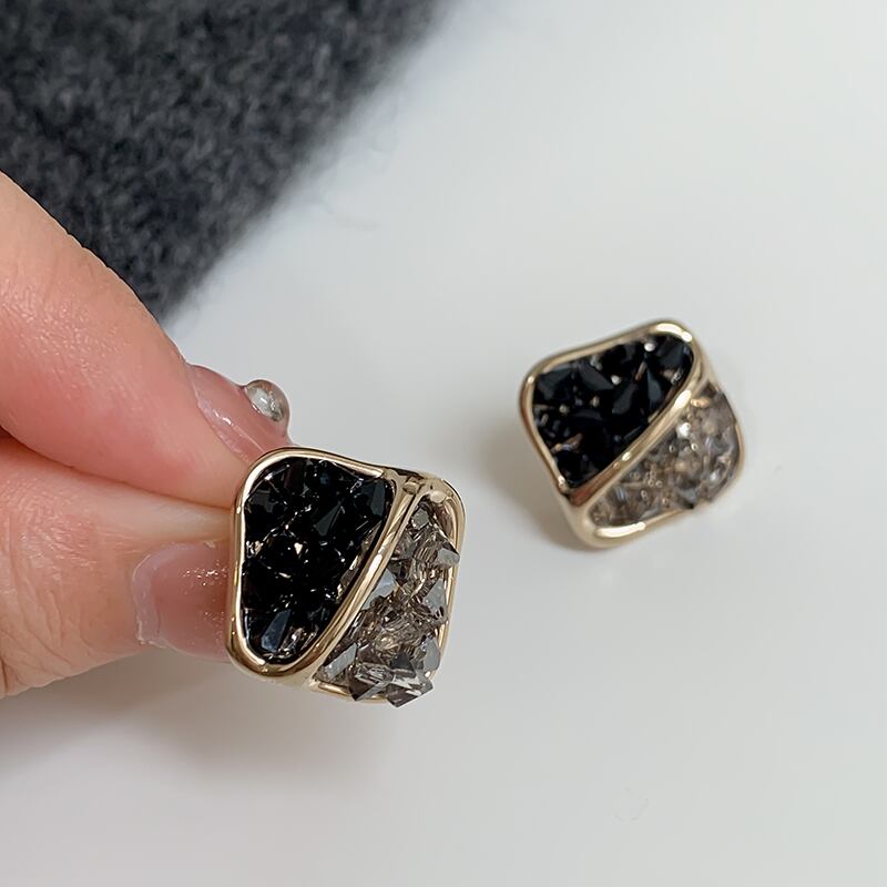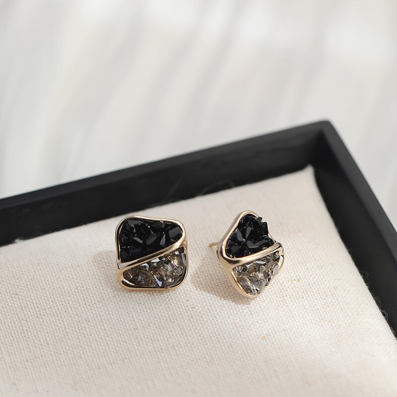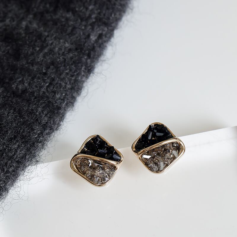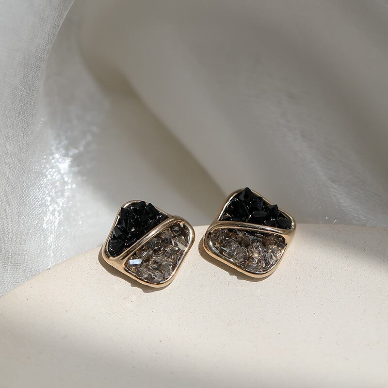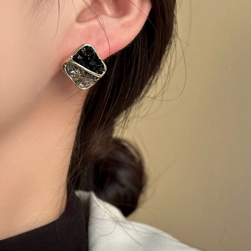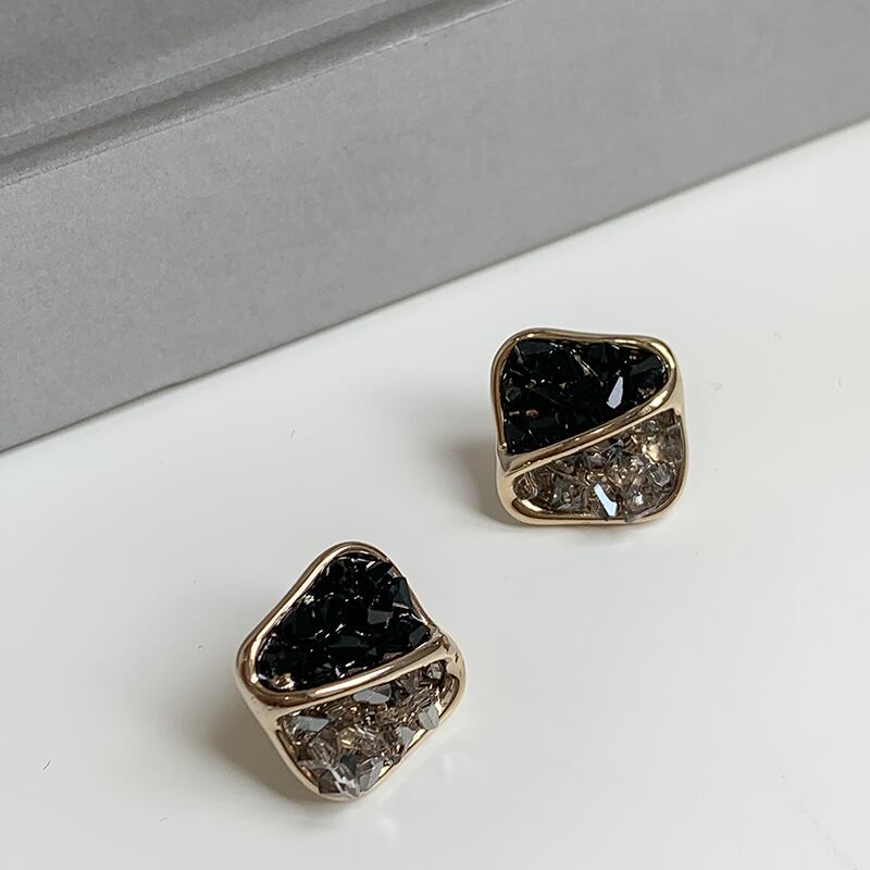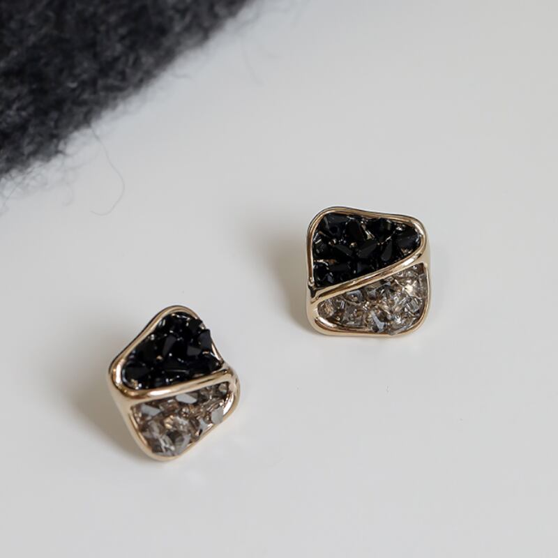 ブラックと透明のクリスタルが絶妙に組み合わさったこのピアスは、どんなスタイルにも華を添えます。