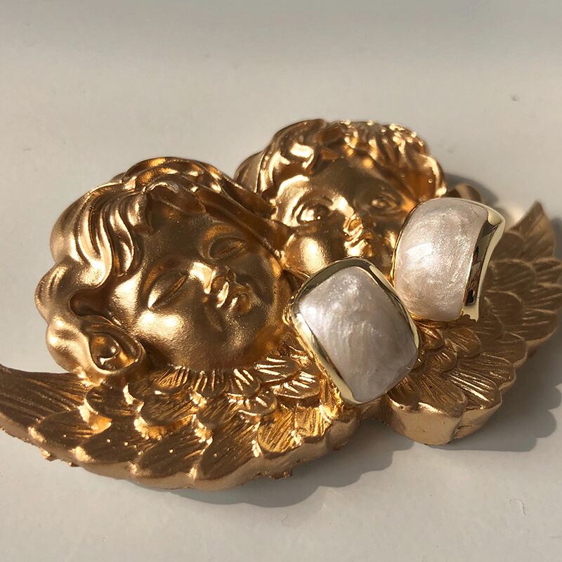 洗練されたデザインが目を引くホワイトマーブルのイヤーアクセサリー。