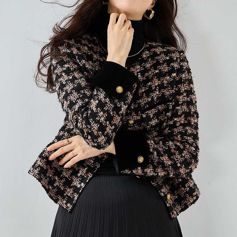 上品なツイード素材が、カジュアルな装いを格調高く引き立てます。