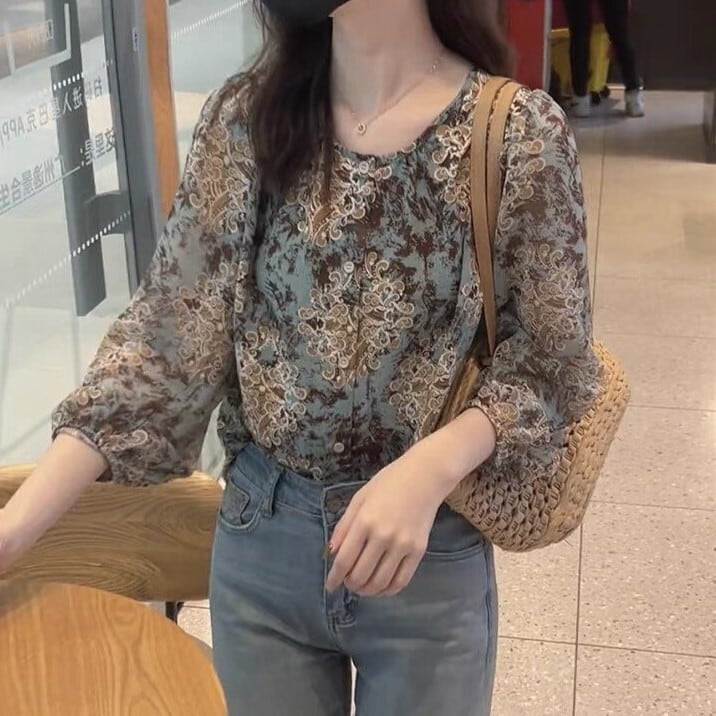落ち着いた色合いの花柄は大人っぽく上品な印象をプラスしてくれます。