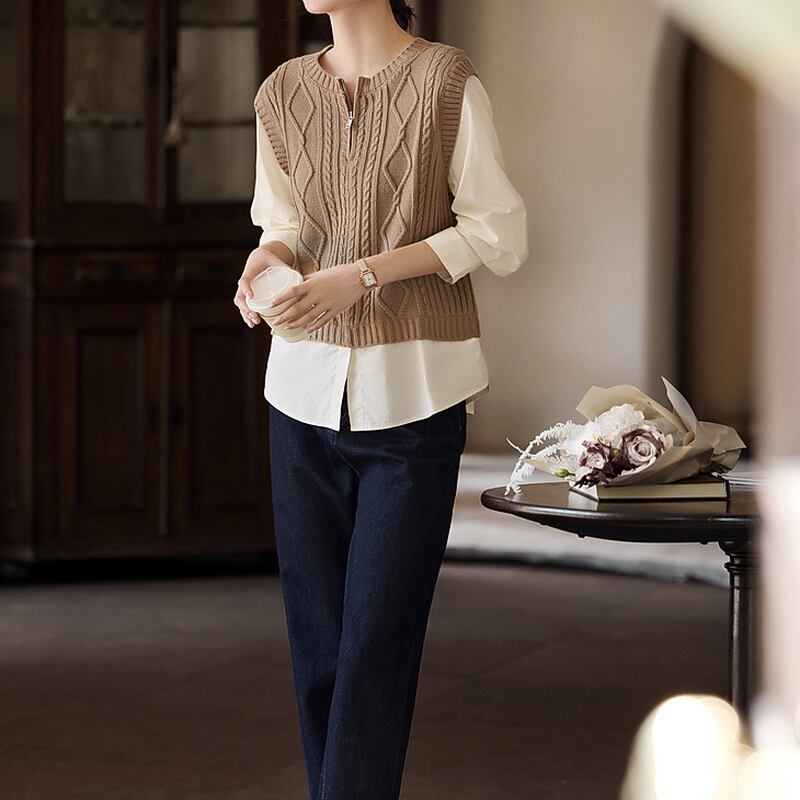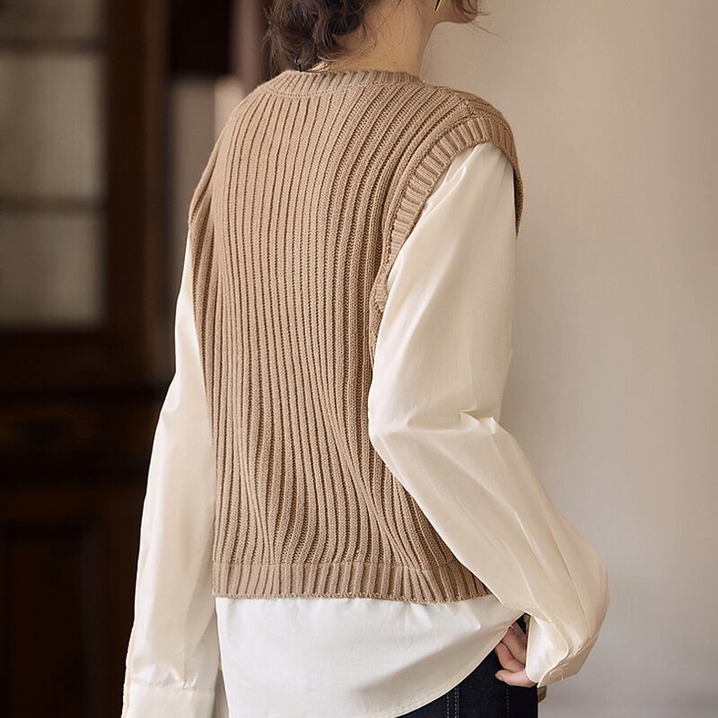 ケーブル編みのベストは着心地も良く、上品な印象を与えてくれます。