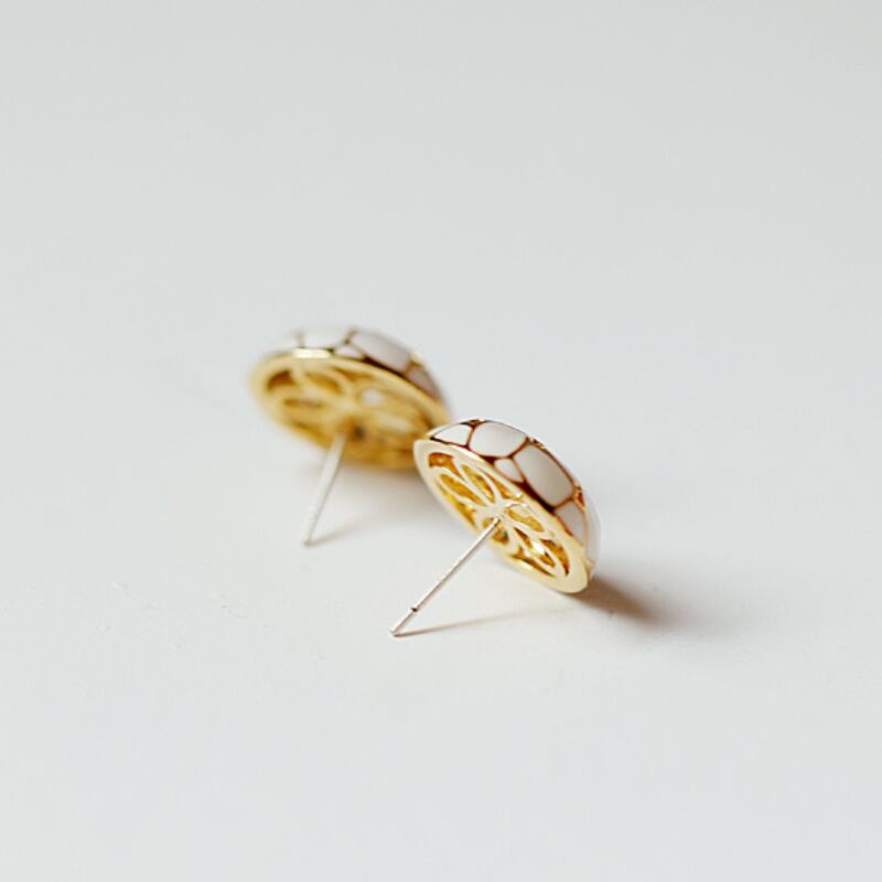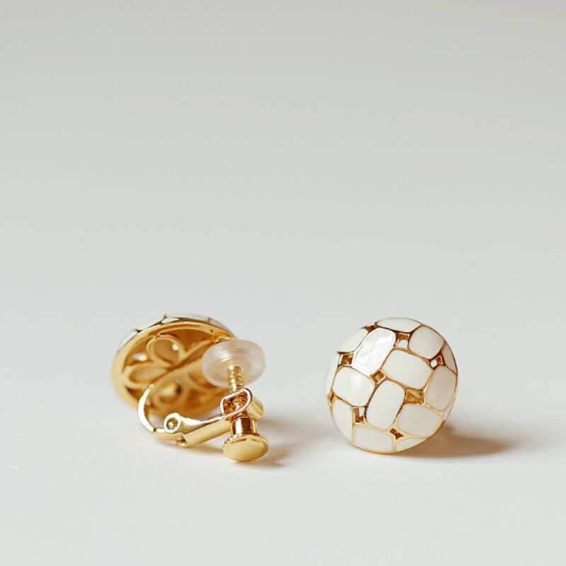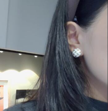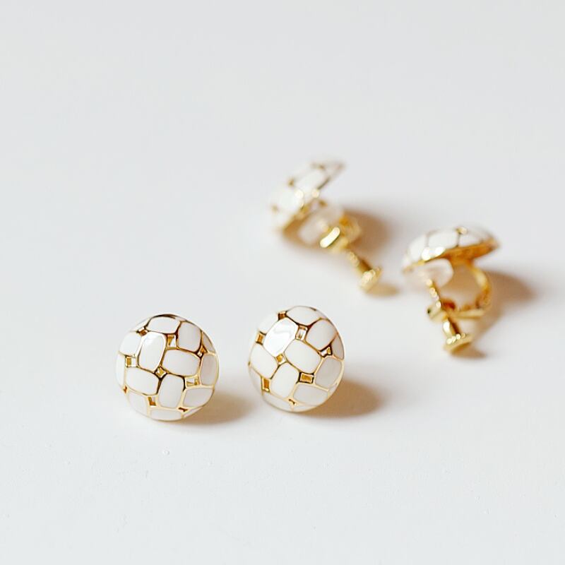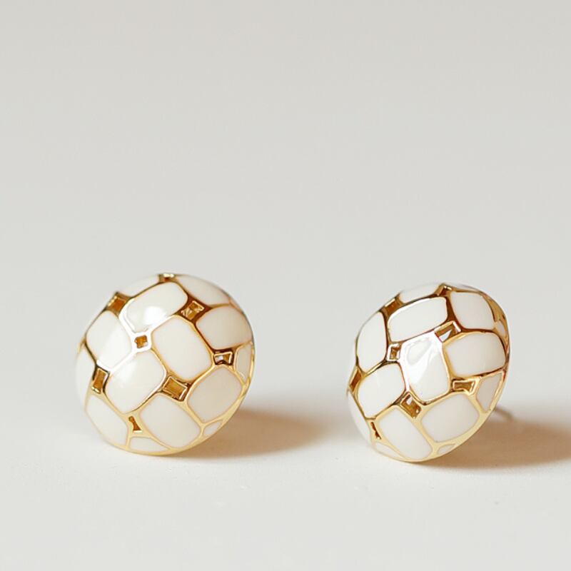 シンプルでありながら存在感のある、チェック柄ラウンドイヤーアクセサリー。