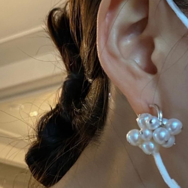 パールが贅沢にあしらわれたフープピアス。