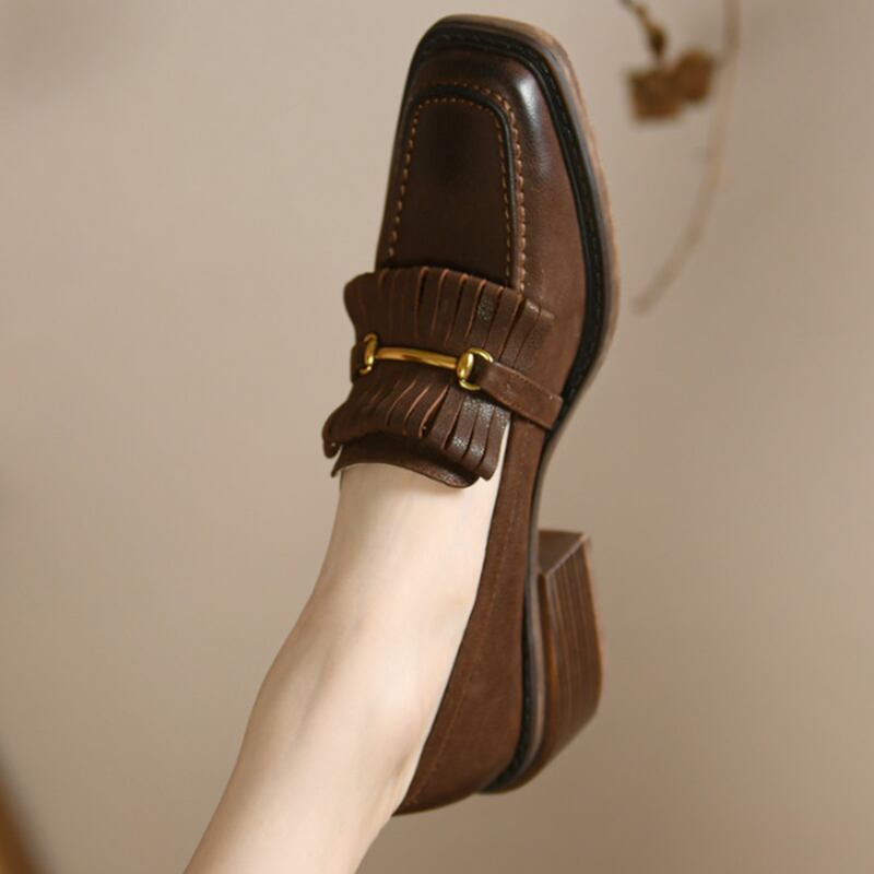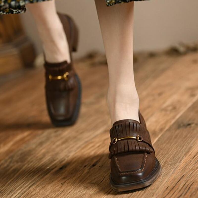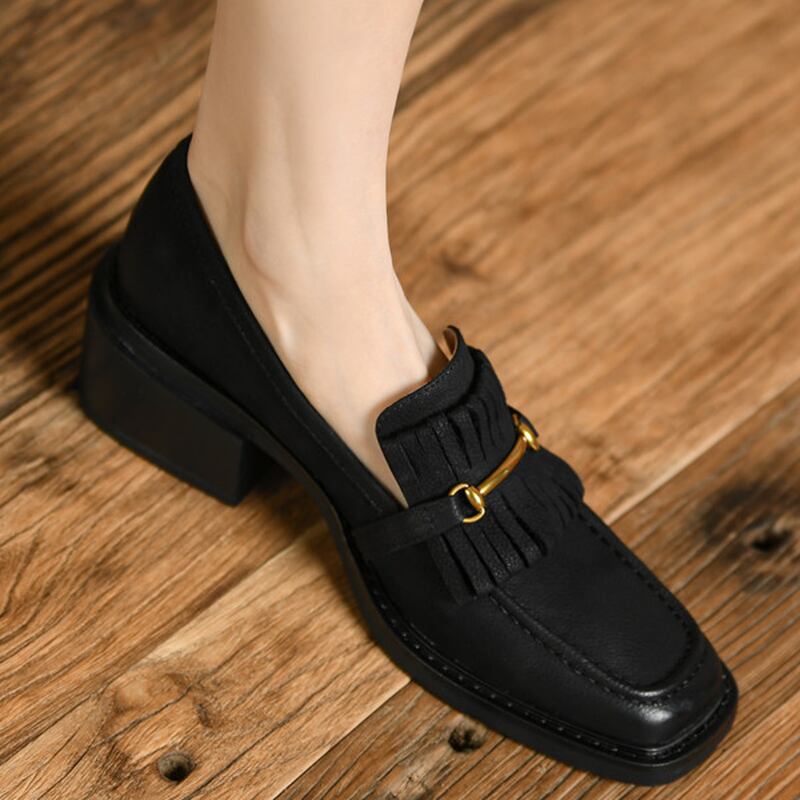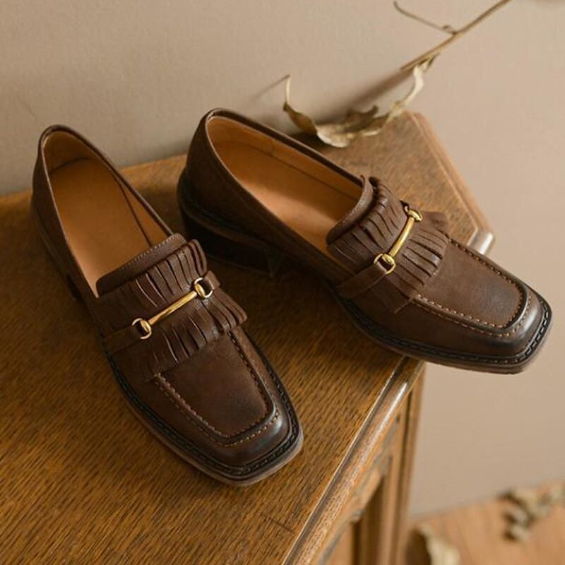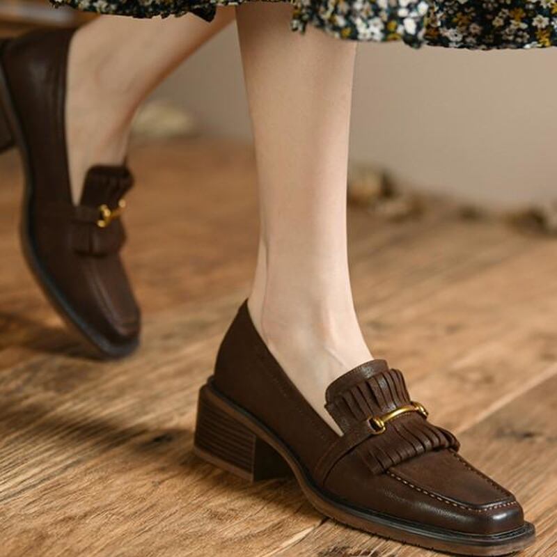 タッセルとメタルバックル装飾が魅力のローファー。 スクエアトゥとチャンキーヒールがトレンド感を演出。 足元をさりげなくアップデートしたい方におすすめです。 《サイズ》 34(22.0cm) 足幅7cm 35(22.5cm) 足幅7.2cm 36(23.0cm) 足幅7.6cm 37(23.5cm) 足幅8cm 38(24.0cm) 足幅8.4cm 39(24.5cm) 足幅8.8cm 40(25.0cm) 足幅9cm ヒール高さ:5cm 《カラー》 ダークブラウン/ブラック 《素材》 アッパー:牛革 ソール:ラバー インソール:豚革 ◇人気のおすすめアイテムをもっと見る https://shop.harmonique.net/categories/5911182 ◇商品を購入する前にこちらの【ご購入前に必ずお読みください】をご確認の上お買い求めください。 https://shop.harmonique.net/blog/2024/06/25/010751 《注意事項》 *harmoniqueではお客様からのご注文を受け、お客様の商品を製作・取り寄せしております。 *基本的にお取り寄せ商品となるため、発送までに《1~3週間前後》お時間をいただいております。 *ご覧いただいているPCやスマートフォンの画面により実物と多少色合いが異なる場合がございます。 *イメージ違いやサイズ違い等、その他お客様都合によりますキャンセル・返品交換はご遠慮ください。 トップページはこちら https://shop.harmonique.net/