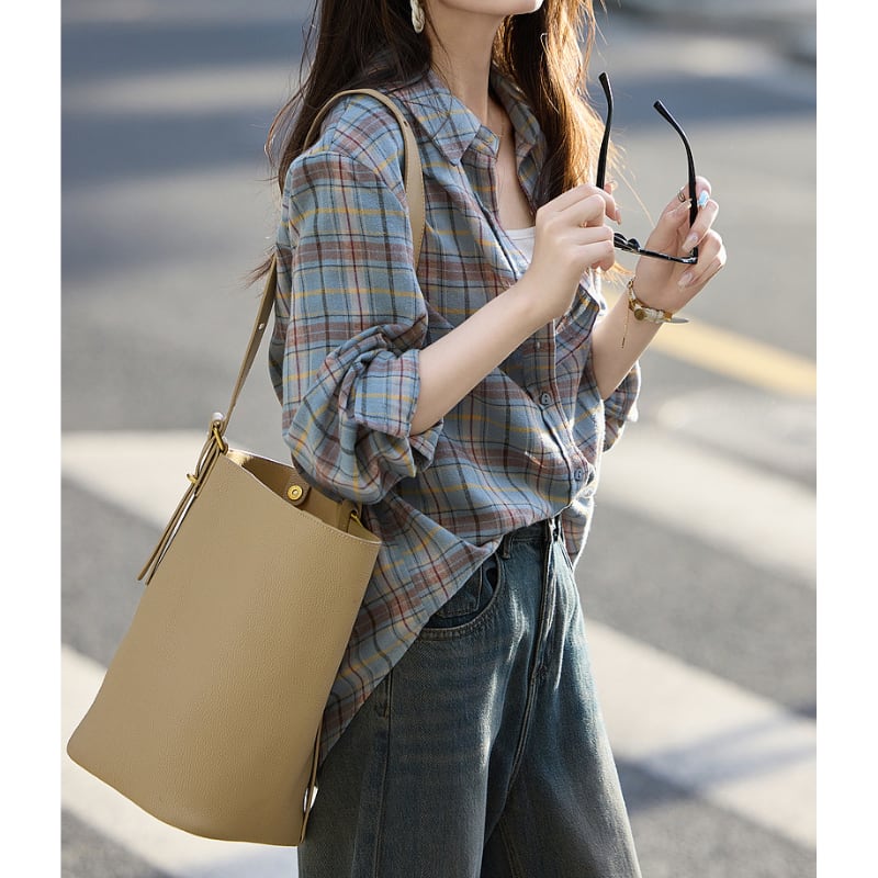 チェック柄のロングスリーブオーバーシャツは程よくゆったりとしたシルエットで、 リラックス感がありながらもどこかクラシカルで上品な印象を与えます。 カジュアルなデニムパンツと合わせれば、普段使いにぴったり。 スカートと合わせれば、女性らしい装いに。 一枚持っていると便利な、着回し力の高いシャツです。 《カラー》 ブルーチェック 《サイズ》 S : 肩幅44.5cm 胸囲108cm 着丈70cm 袖丈55cm 裾回り120cm M : 肩幅46cm 胸囲112cm 着丈72cm 袖丈56cm 裾回り124cm L : 肩幅47.5cm 胸囲116cm 着丈74cm 袖丈57cm 裾回り128cm XL :肩幅49cm 胸囲120cm 着丈76cm 袖丈58cm 裾回り132cm ※採寸方法により1~3cmの誤差がある場合がございます。 《素材》 綿100% ◇人気のおすすめアイテムをもっと見る https://shop.harmonique.net/categories/5911182 ◇商品を購入する前にこちらの【ご購入前に必ずお読みください】をご確認の上お買い求めください。 https://shop.harmonique.net/blog/2024/06/25/010751 《注意事項》 *harmoniqueではお客様からのご注文を受け、お客様の商品を製作・取り寄せしております。 *基本的にお取り寄せ商品となるため、発送までに《1~3週間前後》お時間をいただいております。 *ご覧いただいているPCやスマートフォンの画面により実物と多少色合いが異なる場合がございます。 *イメージ違いやサイズ違い等、その他お客様都合によりますキャンセル・返品交換はご遠慮ください。 トップページはこちら https://shop.harmonique.net/