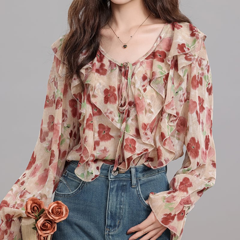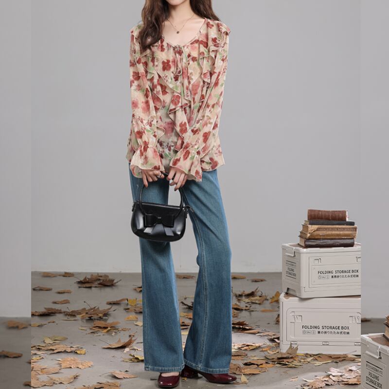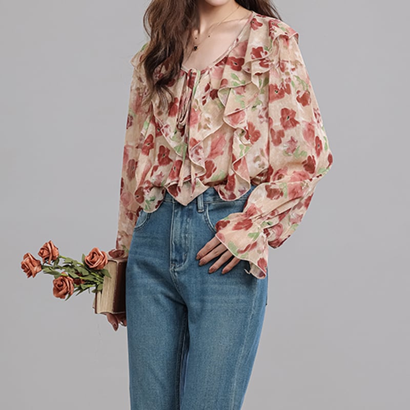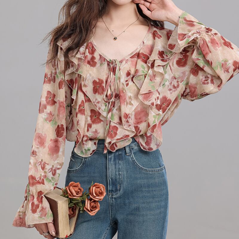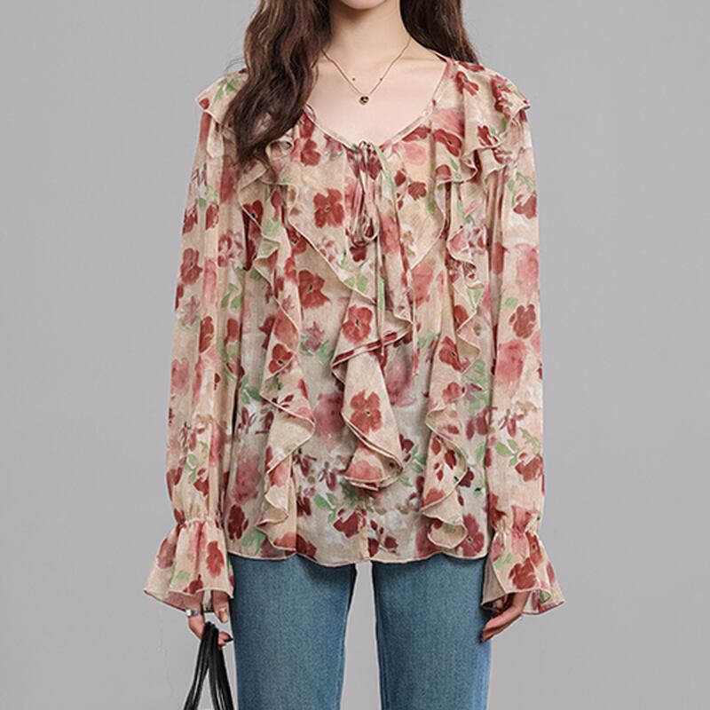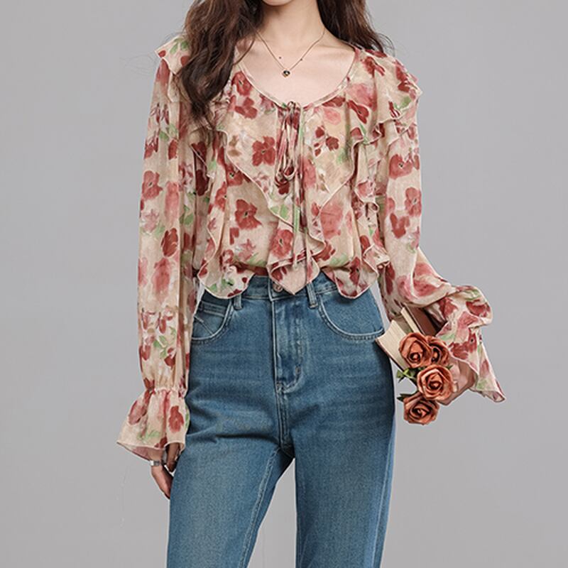 リボンとフリルデザインが女性らしいロングスリーブブラウス。 繊細な花柄プリントが、さりげなく華やかさをプラス。 カジュアルなデニムスタイルから、スカートスタイルまで幅広く合わせやすく、デイリーユースにも最適です。 《サイズ》 S : 肩幅35cm 胸囲100cm 着丈61cm 袖丈64cm M : 肩幅36cm 胸囲104cm 着丈62cm 袖丈65cm L : 肩幅37cm 胸囲108cm 着丈63cm 袖丈66cm ※採寸方法により1~3cmの誤差がある場合がございます。 ※モデル 身長164cm 体重45kg Mサイズ 《素材》 ポリエステル ◇人気のおすすめアイテムをもっと見る https://shop.harmonique.net/categories/5911182 ◇商品を購入する前にこちらの【ご購入前に必ずお読みください】をご確認の上お買い求めください。 https://shop.harmonique.net/blog/2024/06/25/010751 《注意事項》 *harmoniqueではお客様からのご注文を受け、お客様の商品を製作・取り寄せしております。 *基本的にお取り寄せ商品となるため、発送までに《1~3週間前後》お時間をいただいております。 *ご覧いただいているPCやスマートフォンの画面により実物と多少色合いが異なる場合がございます。 *イメージ違いやサイズ違い等、その他お客様都合によりますキャンセル・返品交換はご遠慮ください。 トップページはこちら https://shop.harmonique.net/